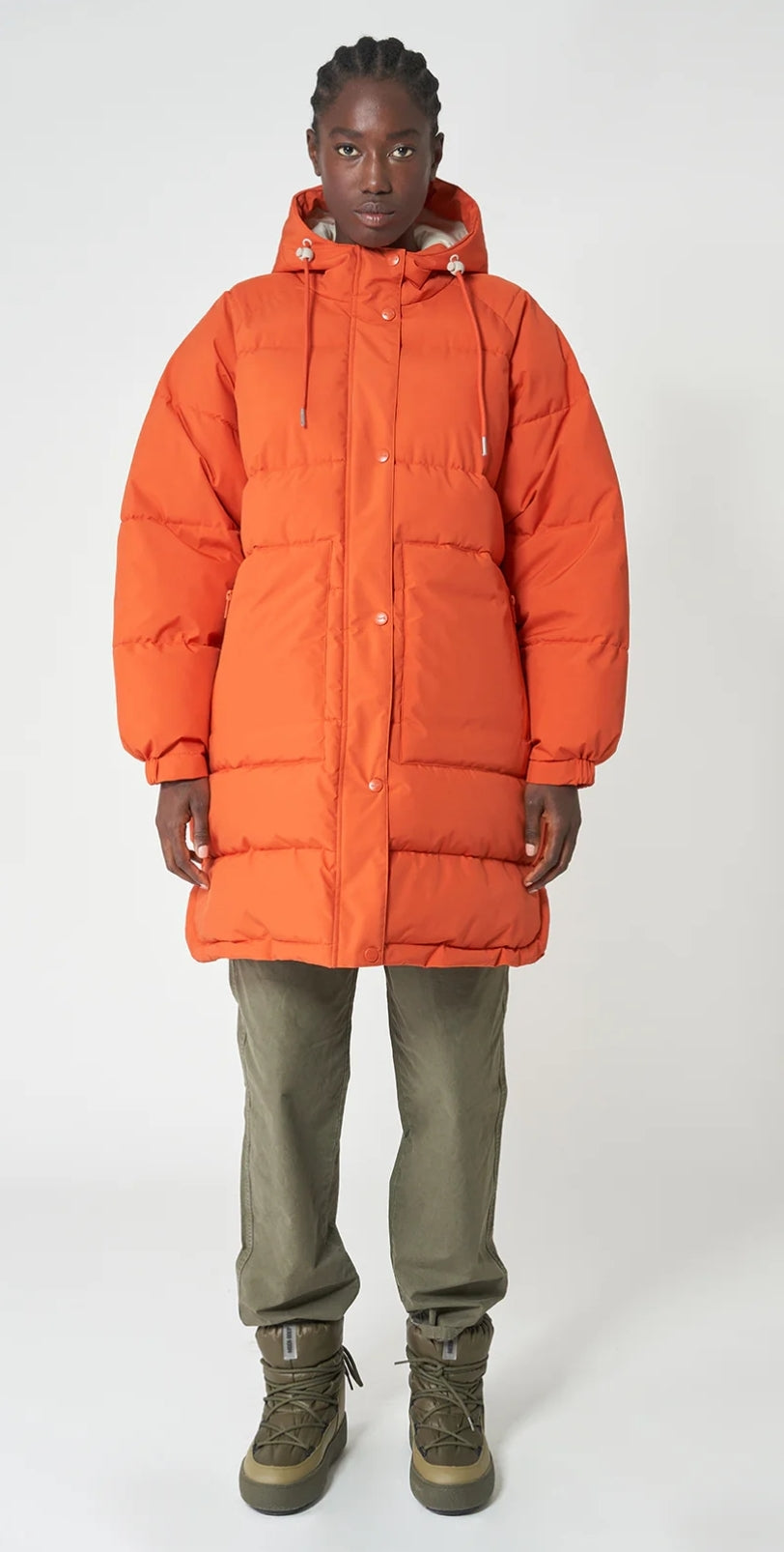The Lumi puffer coat will elevate all your favorite looks thanks to its amazing volume and unique details. Cut from 100% recycled polyester and padded with a featherless and breathable insulation layer, this water-repellent puffer features an oversized cape fit, snap fastenings along the sides, patched pockets and a cozy hood.
